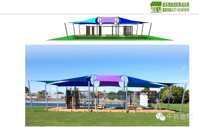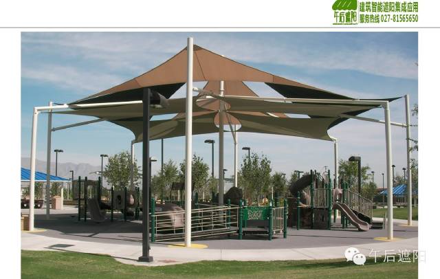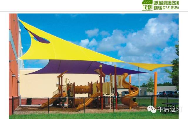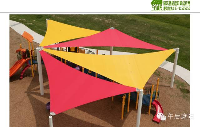 張拉結(jié)構(gòu)遮陽(yáng)帆作為幼兒園戶外配套設(shè)施,拓展了孩子的戶外活動(dòng)空間,可以不受天氣影響,不管晴天雨天依然可以在戶外盡情玩耍。同時(shí)其流線型設(shè)計(jì)對(duì)園區(qū)建筑空間具有不錯(cuò)的裝飾效果,提升園區(qū)整體形象。
